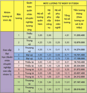 Thang bảng lương quân nhân chuyên nghiệp năm 2024 sẽ áp dụng mức ...